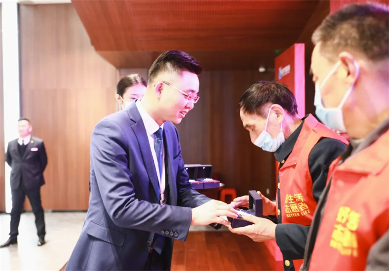 【華地好生活集團副總經(jīng)理蔣凱授予志愿者徽章】