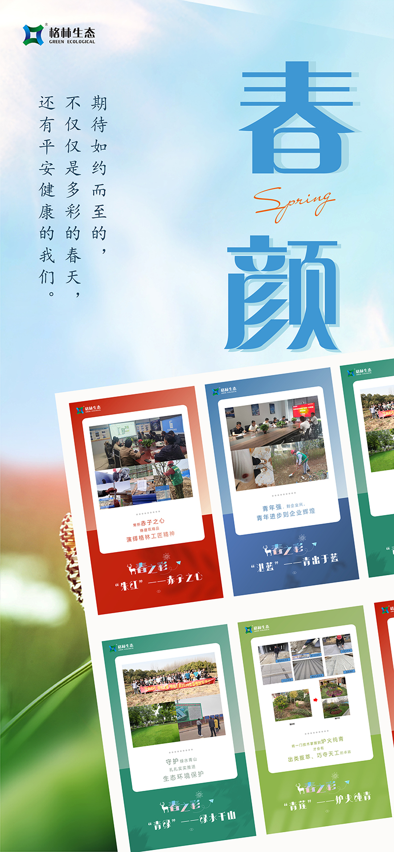 我們牢記“綠水青山就是金山銀山”的生態(tài)理念,每年開展植樹活動,今年共植三百余株欒樹和紅葉石楠球,讓綠色在大地蔓延;與此同時,格林生態(tài)積極履行社會責(zé)任,強化集約節(jié)約理念,與合作伙伴協(xié)同做好污水處理改善,促進(jìn)水生態(tài)環(huán)境持續(xù)改善,努力實現(xiàn)經(jīng)濟(jì)發(fā)展和生態(tài)環(huán)保雙贏目標(biāo)。現(xiàn)如今正是楊柳青青、草長鶯飛之時,傲人的青山綠水正在以秀美優(yōu)雅的姿態(tài)展現(xiàn)出來!