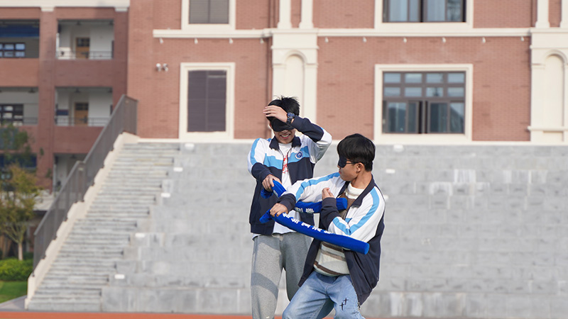 蒙住雙眼,靠聽(tīng)覺(jué)去發(fā)現(xiàn)對(duì)方位置,模仿俠客用長(zhǎng)條氣球刺敲打?qū)Ψ?,也要注意分辨外界干擾,歡聲笑語(yǔ)在操場(chǎng)飄蕩,幫助同學(xué)們釋放學(xué)習(xí)壓力。