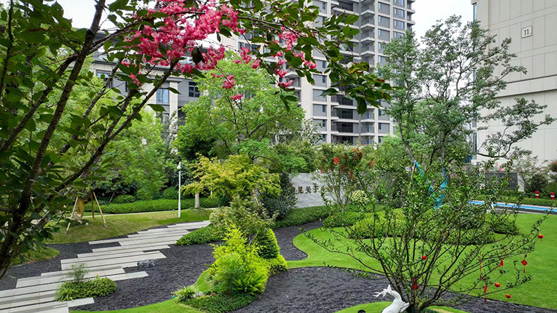 長青喬木、應(yīng)時(shí)花草一起組成,春花、夏蔭、秋聲、冬藏的畫境開啟歸家漫時(shí)光,漫步其中,移步異景如畫卷層層鋪展。
