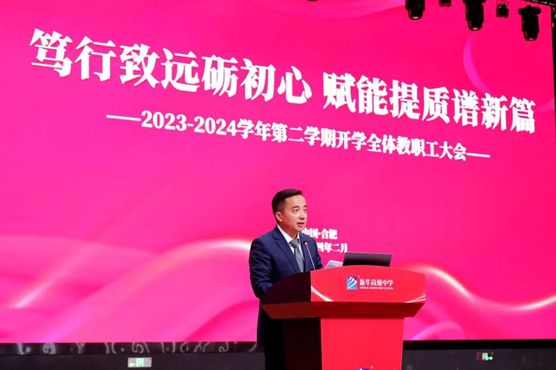 時(shí)序更替,華章日新。為進(jìn)一步凝聚共識(shí),統(tǒng)一思想,全力做好新學(xué)期各項(xiàng)準(zhǔn)備工作,2月19日上午,我校在文體中心報(bào)告廳召開(kāi)新學(xué)期全體教職工大會(huì),會(huì)議由新華高級(jí)中學(xué)黨政辦公室主任夏娟娟主持。全體教職工以龍騰虎躍的精神面貌,充沛飽滿(mǎn)的工作熱情齊聚一堂參加會(huì)議。