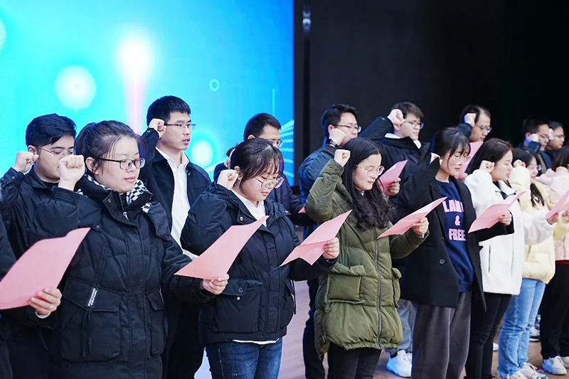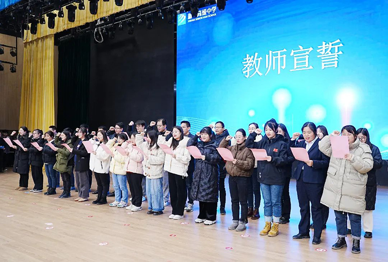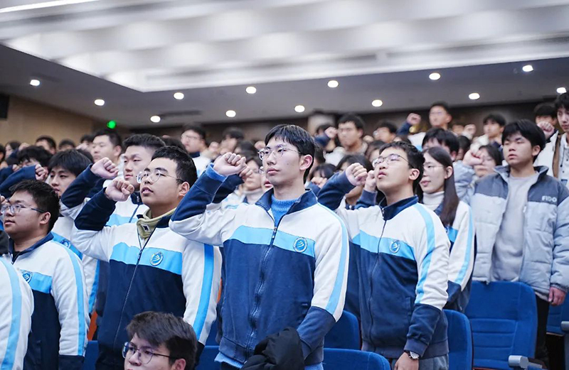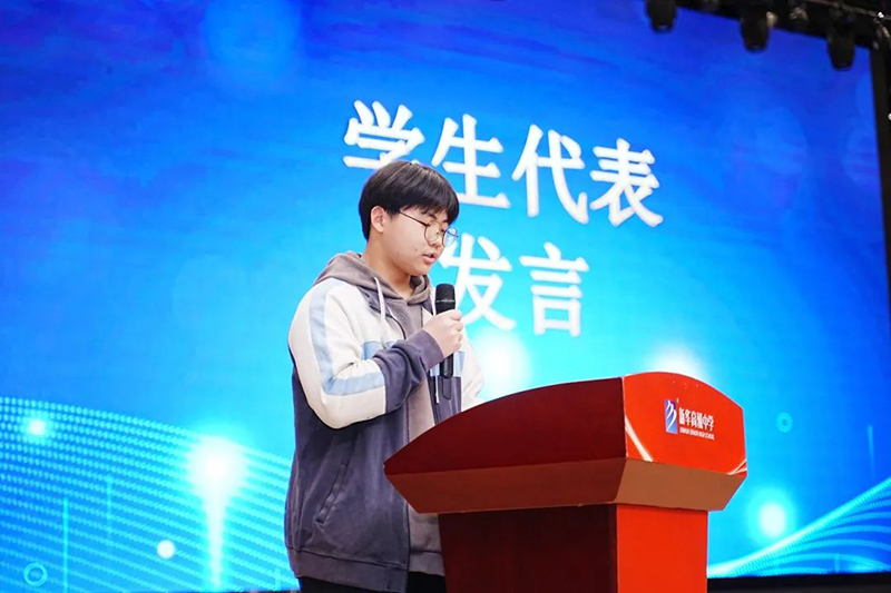 接下來由鮑李合毅同學帶領全體學生宣誓,他們豪情萬丈,壯志凌云,鏗鏘的宣誓響徹大廳,氣壯山河的誓言似乎已經(jīng)在預示著他們學考的勝利。