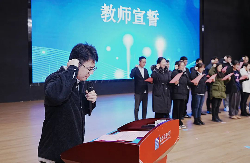 接下來金波老師帶領全體教師宣誓,他們甘做人梯,培育棟梁,錚錚誓言飽含著每一位教師的職責和使命,他們用真誠告訴孩子們,只管勇往直前,沖鋒陷陣,放心,老師永遠是你們最堅強的后盾!