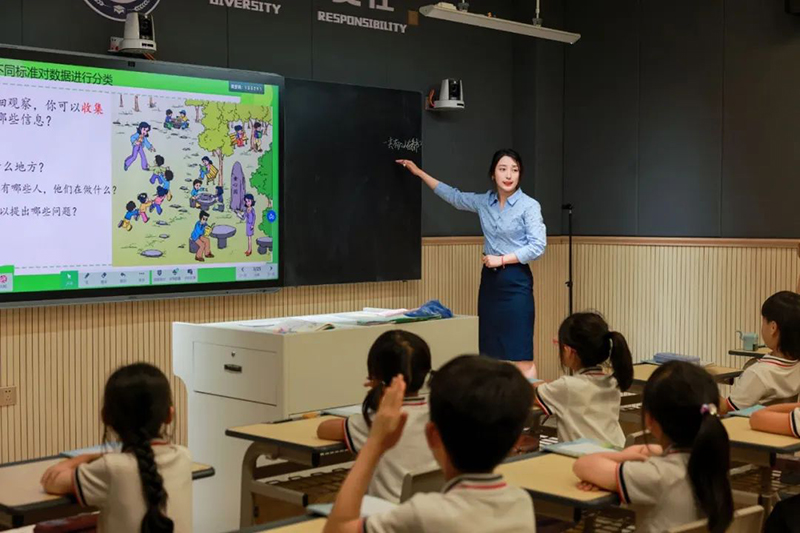 在我們的數(shù)學(xué)課上,也是一直強(qiáng)調(diào)數(shù)學(xué)思維訓(xùn)練和扎實(shí)的數(shù)學(xué)基礎(chǔ)知識(shí)點(diǎn)并重,注重創(chuàng)設(shè)問(wèn)題情境。讓孩子運(yùn)用學(xué)過(guò)的知識(shí)解決一個(gè)個(gè)新問(wèn)題,以此強(qiáng)化知識(shí)的掌握程度,而不是讓學(xué)生去生硬地刷題。開放式的數(shù)學(xué)思維培養(yǎng),可以走得更遠(yuǎn),因?yàn)閾碛辛私鉀Q問(wèn)題的能力,是可以終身受用的。